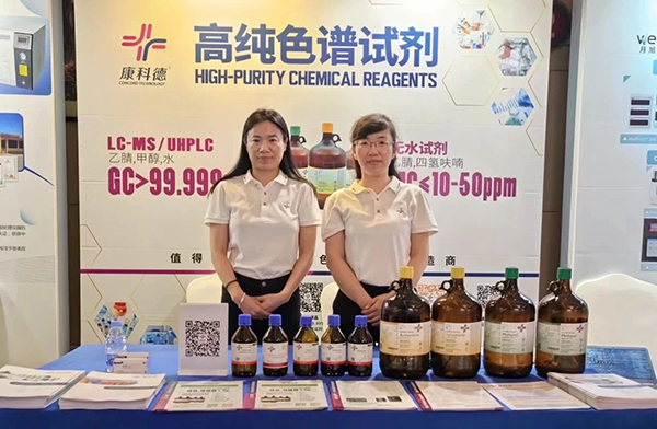 康科德在現(xiàn)場展示了液質(zhì)聯(lián)用級試劑、超純色譜級試劑、卡爾費(fèi)休試劑、色譜純試劑等系列產(chǎn)品。憑借產(chǎn)品超高純度、超強(qiáng)穩(wěn)定性和客戶的良好口碑再次“出圈”,吸引多位專家老師駐足,掀起了一波又一波的咨詢熱潮。其中一位老師對康科德的超純色譜級試劑產(chǎn)生了濃厚的興趣,他表示近期正在尋找一家產(chǎn)品質(zhì)量穩(wěn)定的化學(xué)試劑生產(chǎn)企業(yè)來合作。在了解康科德試劑的特性和優(yōu)勢后,非常期待能夠與康科德合作。多位業(yè)界資深專家老師也紛紛對產(chǎn)品質(zhì)量和穩(wěn)定性表示認(rèn)可和肯定。通過此次產(chǎn)品展示與各項(xiàng)指標(biāo)講解,康科德收獲大量“粉絲”,為康科德在藥品檢測技術(shù)領(lǐng)域的發(fā)展奠定了堅(jiān)實(shí)基礎(chǔ)。