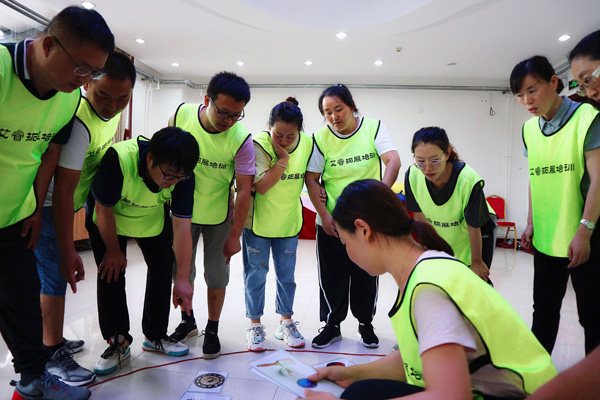 在正式活動之前,教官通過一系列輕快的活動,建立相互信任的和諧團隊氛圍。緊接著在教官的指導下,康科德各成員迅速組成四個小隊,經過競選隊長、編排隊名、口號等內容搭建,迅速誕生出“科學隊”、“德云坊隊”、“同心同德隊”、“德信隊”四個隊伍。