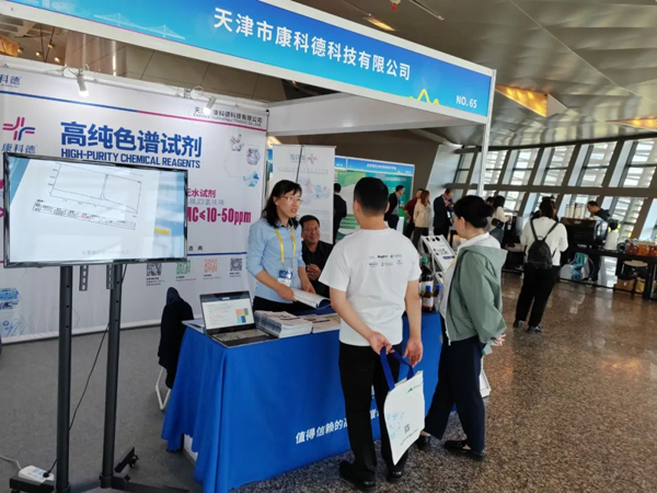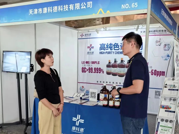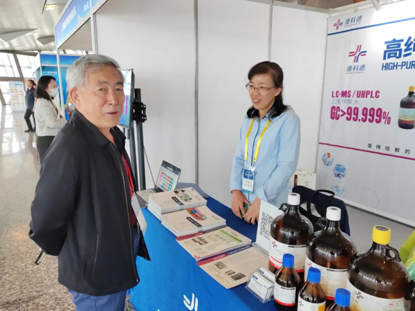康科德液質聯用級甲醇、超純色譜級乙腈、色譜純梯度級乙腈、無甲醇乙醇、卡式試劑等系列產品參會展出,產品技術指標均一化、穩定性和超高純度等特點,吸引了眾多專家老師的關注與咨詢,康科德工作人員與專家老師們進行了深入的技術交流和咨詢洽談,在現場即達成了合作。